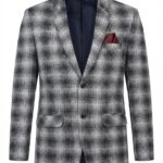 A checked blue blazer designed for a sharp, modern statement.
