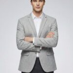 Tailored fit with sharp lapels for a polished silhouette.